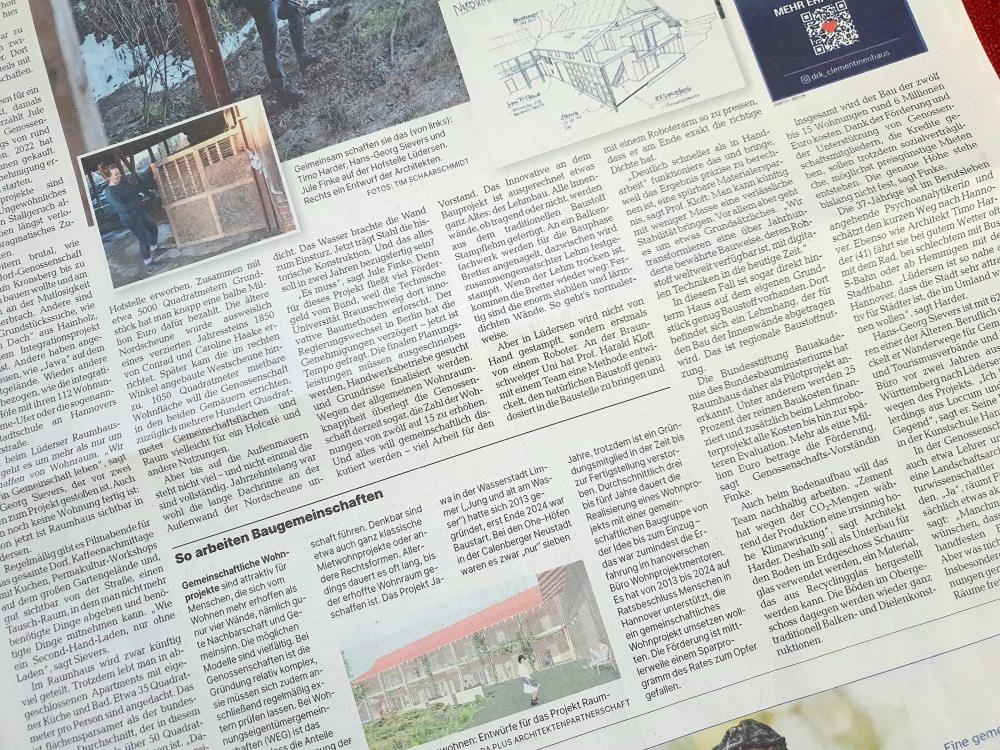 Leider können wir hier nur Ausschnitte des Artikels zitieren, aus rechtlichen Gründen. Wenn Ihr ihn komplett lesen wollt, findet Ihr ihn bei der HAZ unter diesem Link (allerdings hinter Bezahlschranke): www.haz.de/lokales/hannover/viel-lehm-und-gute-ideen-19-menschen-bauen…